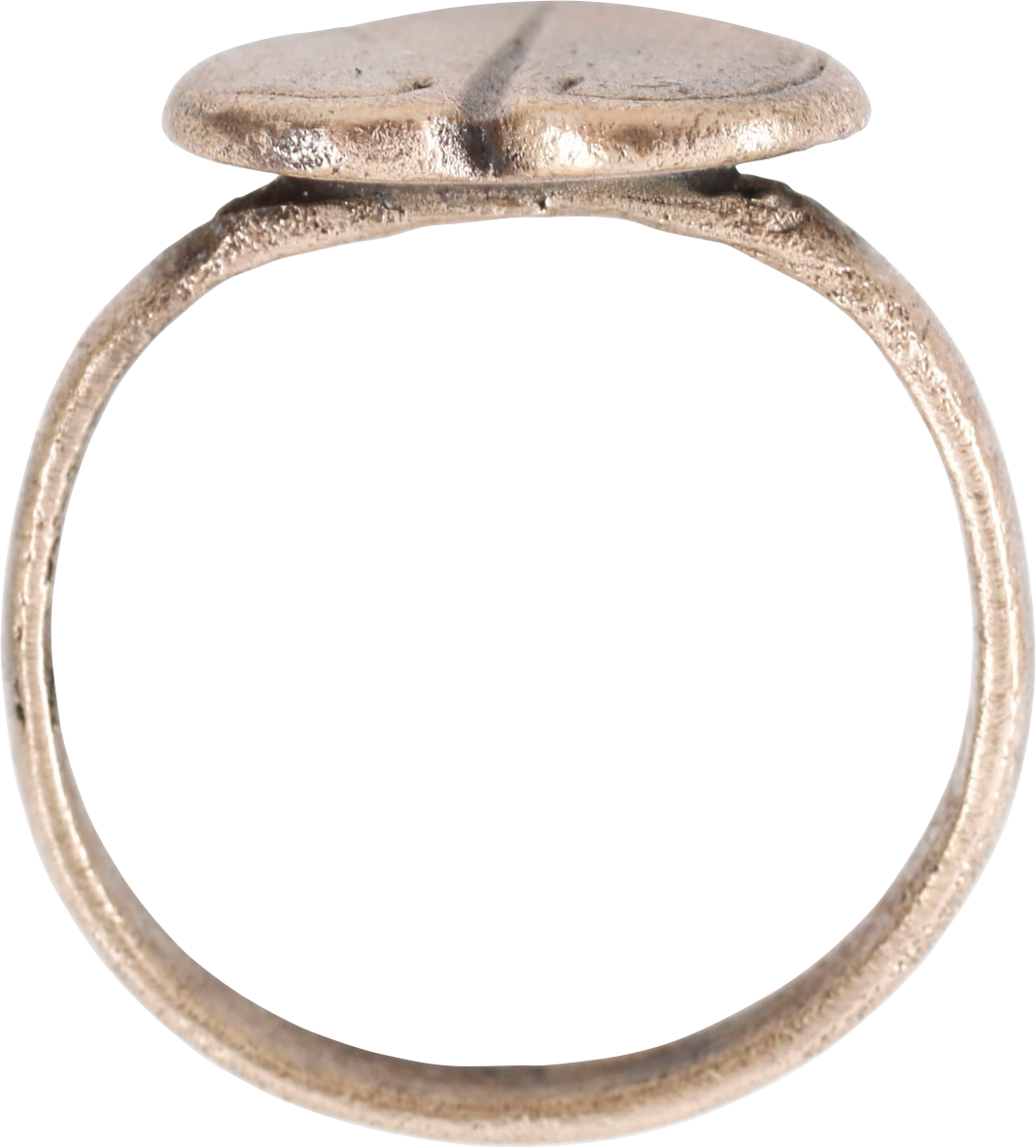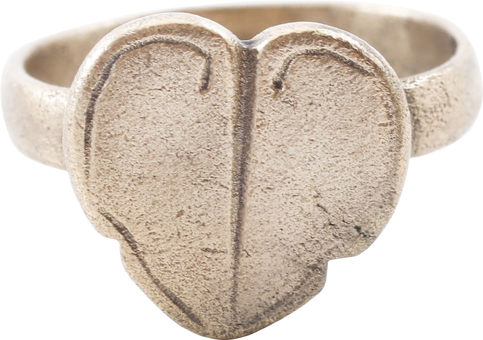 Gilt bronze, size 7 with 3.2mm rounded face band. Raised heart shaped bezel with line border. Slightly waisted (indented) at the third point as were many Viking hearts a millennium earlier. Professionally refurbished with the 24karat gold surface restored. Gift boxed with certificate of authenticity.