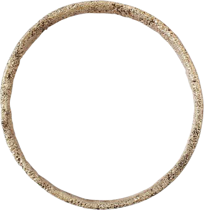 Gilt bronze, size 4 3/4. Broad, 3.7mm band with double incised bands resulting in five rank section. Surface textured from burial. Professionally refurbished with the 24karat gold surface restored. See the reference image which shows the process. Gift boxed with certificate of authenticity. Vikings exchanged rings on the pommel of the groom 's sword.