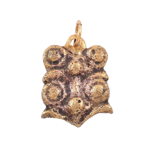Gilt bronze, under 3/4” total height, formed as four hemispheres. This form is thought to derive from the Medici family coat of arms. The original symbol for pawn brokers was three flat circles from the Medici arms as the Medici family controlled the economy in Florence. The circles were later changed to balls for visual enhancement and hung outside the shops as trade signs. As used here, the symbol probably simply refers to Florence indicating a citizen of Florence, and thus, a subject of the Medici family. Professionally refurbished with the 24karat gold surface restored and suspended from an 18” modern gilt Sterling silver neck chain. Jewelry gift boxed with certificate of authenticity.