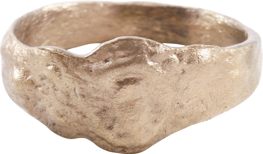 During the Renaissance, the act of committing to marriage took place as a formal ceremony with vows, considered sacred and unbreakable, exchanged. A ring was given by the man to the woman to bind the pledge and worn until the marriage. That practice is believed to derive from the custom of providing a bride’s price or dowry. This example is size 4 with an oval bezel with a beaded surround, flanked by an arrangement of 3 small bosses in foliage, on each side. Fine quality and crisply detailed indicating that it was made for a young person who perished soon after the betrothal. The 24karat gold surface restored and is gift boxed with a certificate of authenticity.