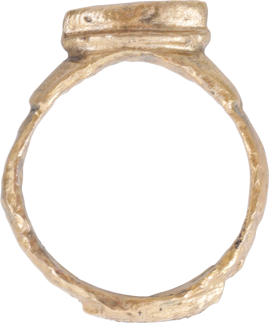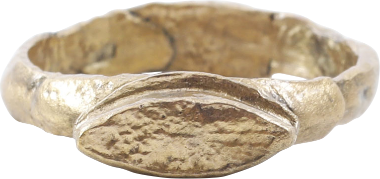 Exceptional example for a woman of status. Size 7 ½ with 3.4mm rounded face band stepped at the shoulders and with a broad base lug in the Roman taste. Raised bezel in two stages, of lenticular form, emulating the squinting eye. It was believed that the evil eye or evil glance could cause misfortune and that it was necessary to employ protection in the form of an amulet or ring which could repel the evil. Professionally refurbished with the 24karat gold surface restored for contemporary wear. Gift boxed with a certificate of authenticity.
