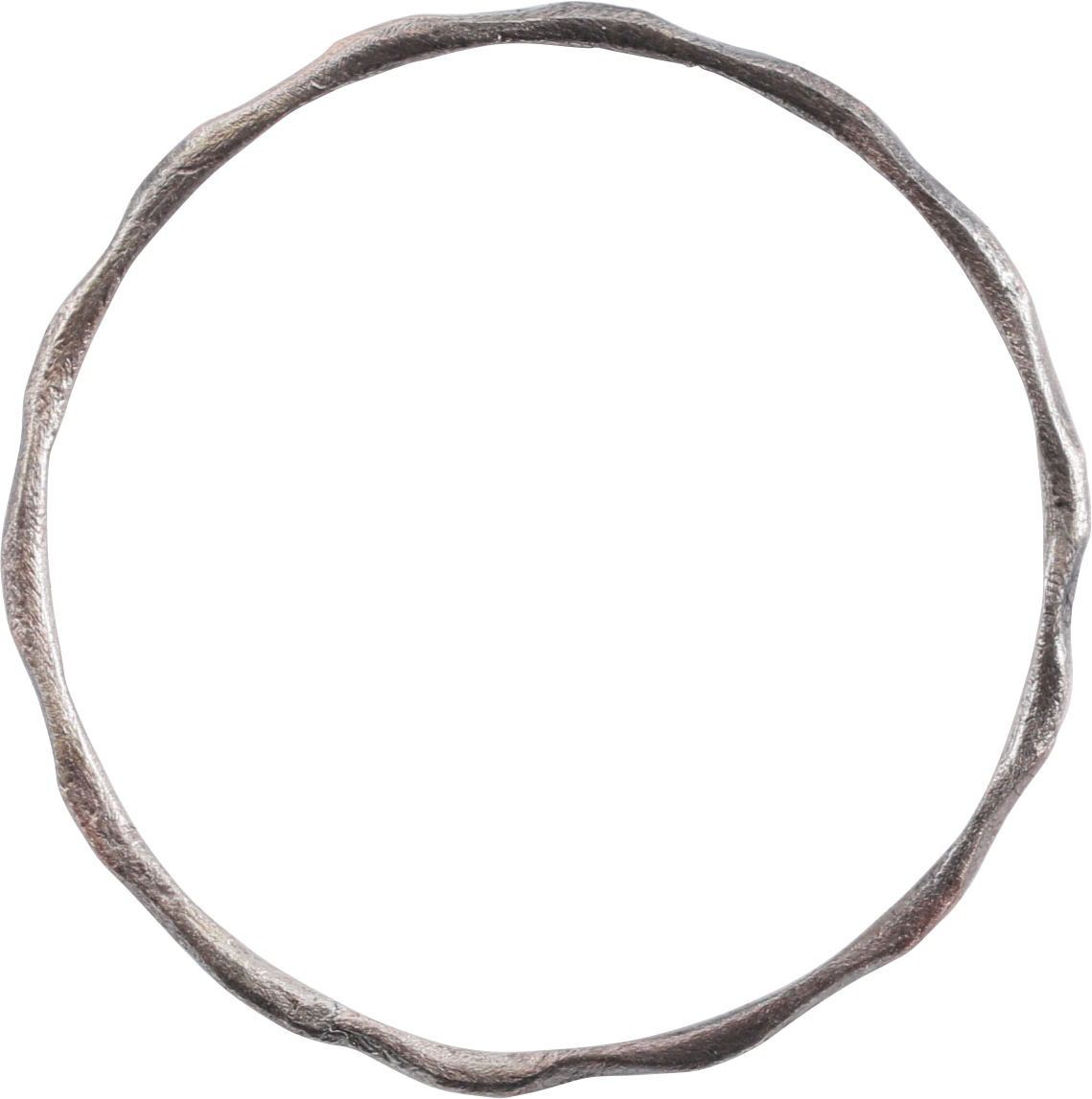 Silvered bronze, just under 7/8” diameter, (0.83”). Circular, the perimeter faceted or scalloped. The inside flat to allow use as a finger ring as well. These were worn in the hair, particularly around the ears. For Vikings, beautiful hair was a sign of wealth and status. There is some indication that they were also worn on the finger, perhaps a regional practice and likely, considering that Vikings occupied thousands of square miles for over 300 years. Professionally refurbished with the silver surface restored.
