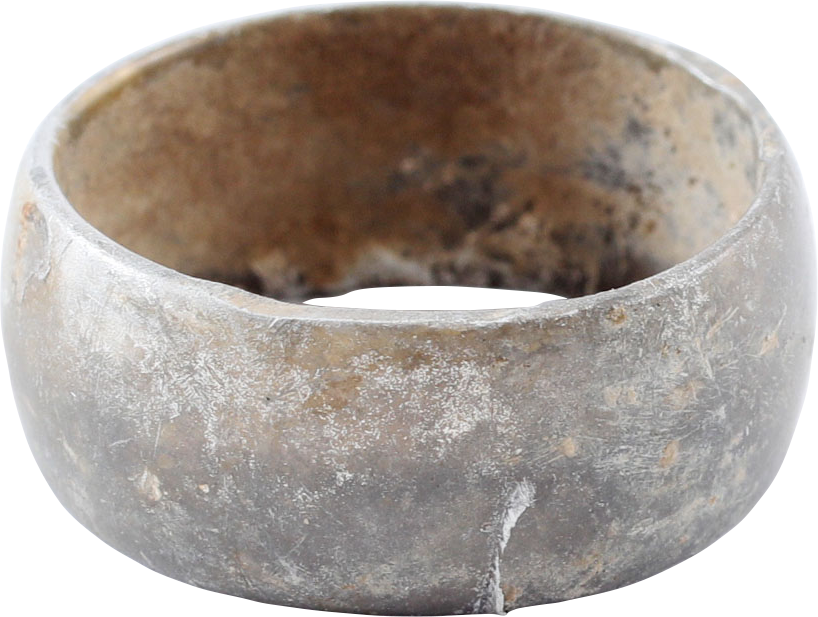 Found by metal detector around 2000 at Ypres (Belgium) scene of some of the most intense fighting with English and French bringing the German advance to a stalemate. Made of aluminum salvaged from ordnance. Size 8 3/4 with rounded broad 8.7mm band. Light gray surface oxidation.